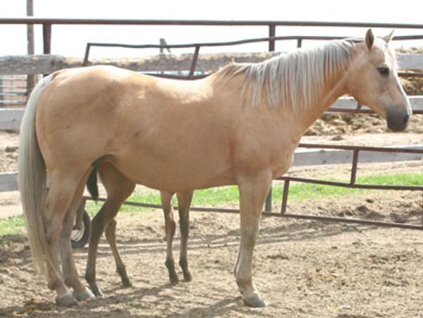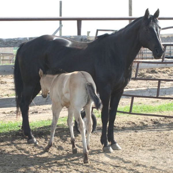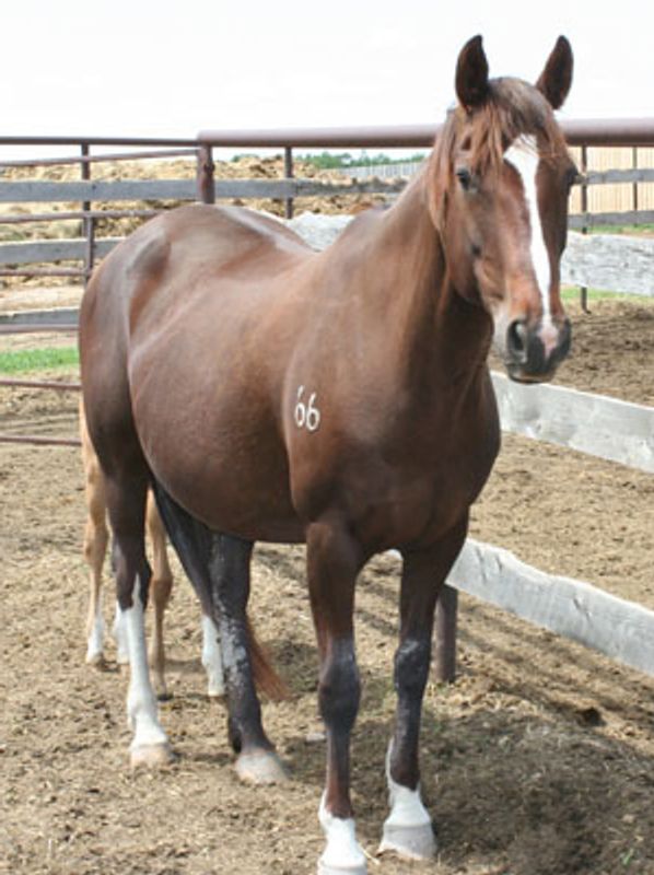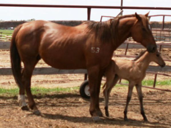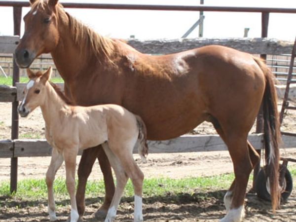 This mare is by a son of our great foundation sire, Mr Bug Wimpy. His foals excelled in the arena, especially in barrel racing. He was the sire to the great "Brownie" (Manitoba Rodeo Cowboy Association barrel horse of the year '93, '94, '95, and '96. Canadian Cowboys Association finals qualifier '94, '95, and '96. Inducted into the Manitoba Rodeo Cowboy Association Hall of Fame in 2008.) The intelligence and trainability of Mr Bug Wimpy's progeny traverses the generations, and is still influencing our foal crop today.